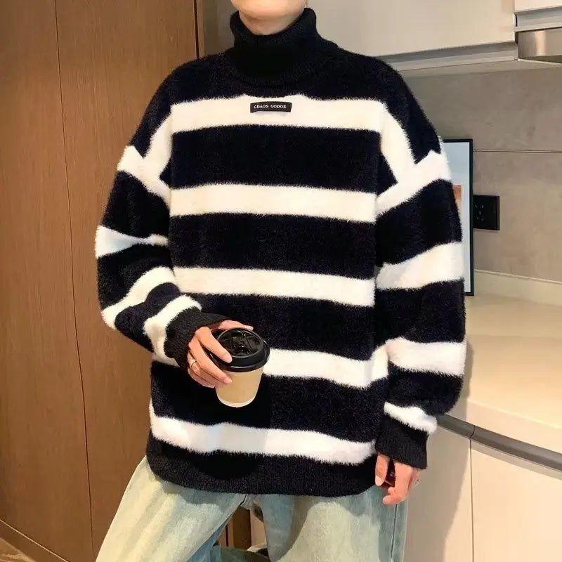 Męski Sweter w Paski z Golfem